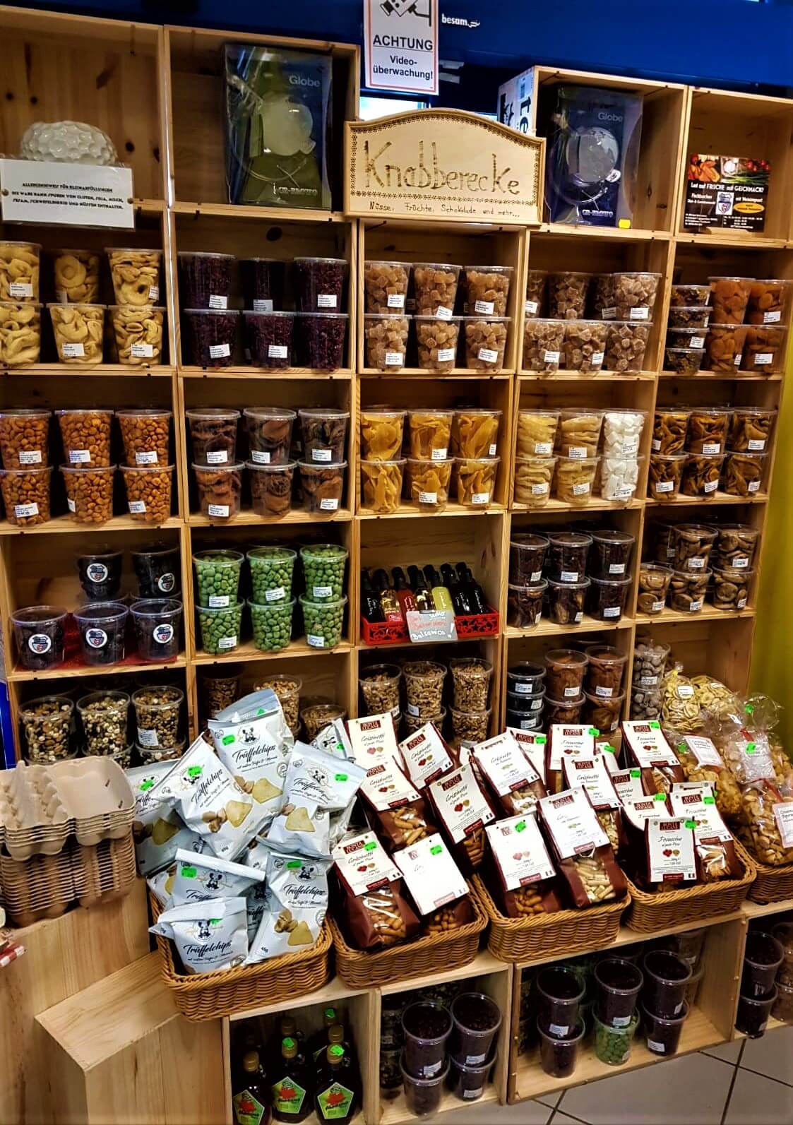 Genießer finden ausgesuchte Produkte mit hoher Qualität. Hochwertiges Olivenöl, Nüsse und Mandeln in verschiedenen Variationen, sowie Essig mit feinen Noten teilen sich Regale mit Schinken, Wurstspezialitäten, Chorizos, Käsesorten und einer sehr großen Weinauswahl.